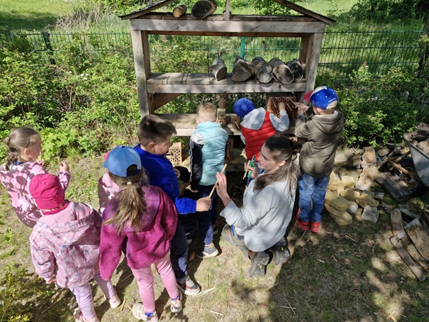 Die Kindertagesstätte ist seit jeher regelmäßig mit Gruppen im Haus der Flüsse zu Gast. Im Kitaalltag werden werden die Kinder ermuntert, ihre nähere Umgebung kennenzulernen. Die Hochbeete und die Blumenwiese des Geländes laden die Kinder ein, sich Fragen über die Natur zu stellen. - Kita Villa Kunterbunt Warnau (BiosphärenKita seit Juni 2022)