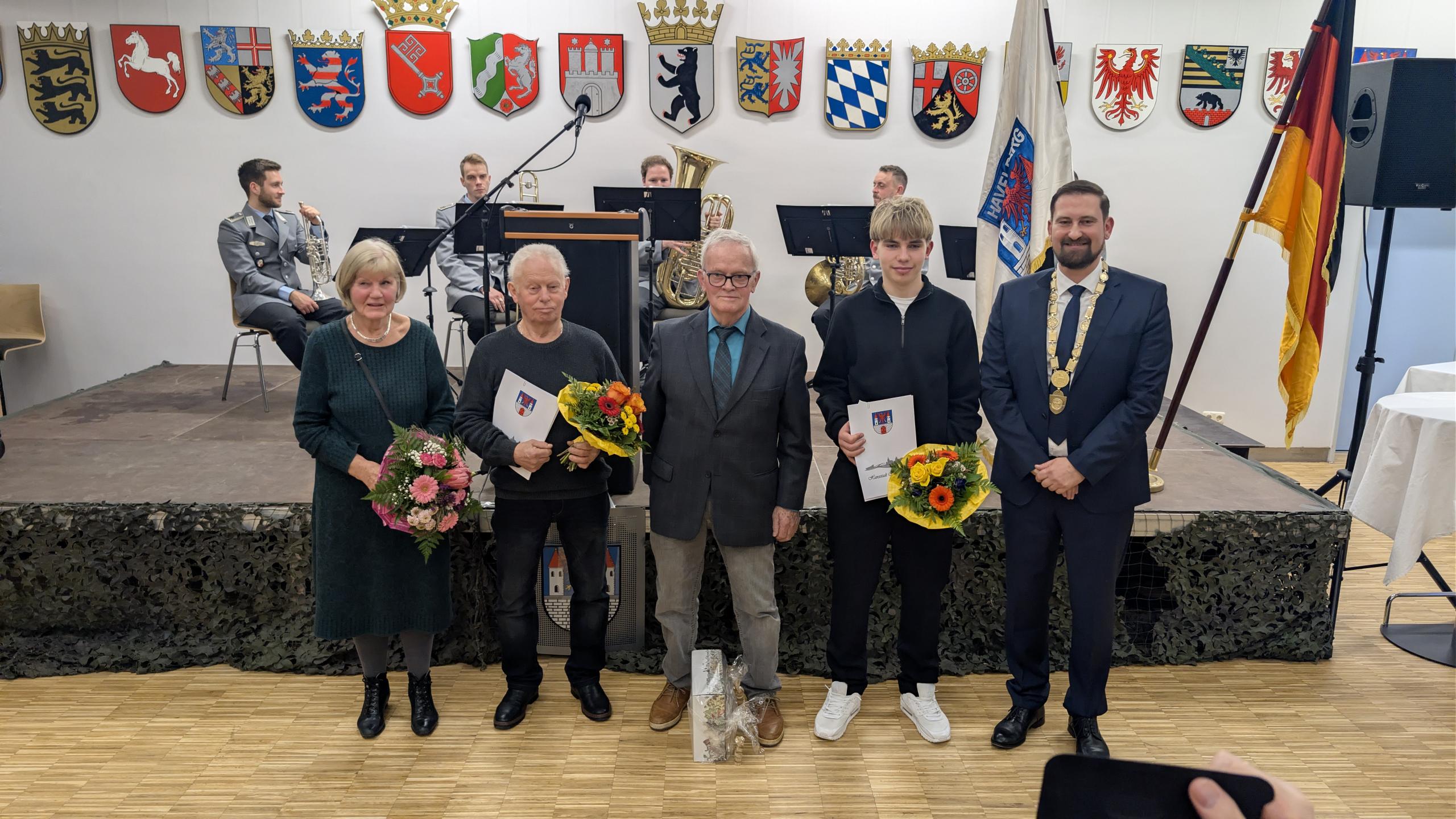 Ein weiterer Programmpunkt des Empfangs war die Würdigung besonderer Leistungen. Für herausragende sportliche Leistungen im Jugendsport wurde Jonathan Tippel ausgezeichnet. Er erzielte sowohl in der Leichtathletik als auch im Fußball bemerkenswerte Erfolge, darunter Vizelandesmeistertitel, mehrere Bezirksmeistertitel und persönliche Bestzeiten bei überregionalen Wettkämpfen.