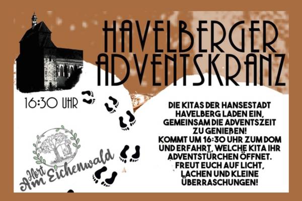 An vier Montagen im Dezember öffnet jeweils eine Kita in Havelberg ihr Adventstürchen. Hinter jedem Türchen warten Überraschungen – ein Erlebnis für Groß und Klein.